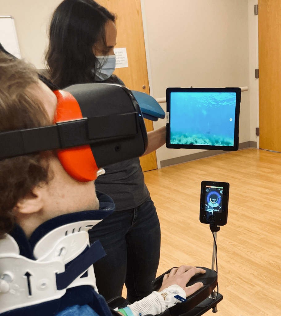 Today, I attended Kevin’s therapies and classes with him. He did more wheelchair training, respiratory therapy and worked with his occupational therapist in the gym. The highlight of the day was his time in recreational therapy. His therapist set up an Oculus virtual reality headset for him and let him explore 360 videos of the Great Barrier Reef, the Sahara Desert and Machu Picchu. He enjoyed it greatly and we all got to silently celebrate his smiles where he couldn’t see us.
