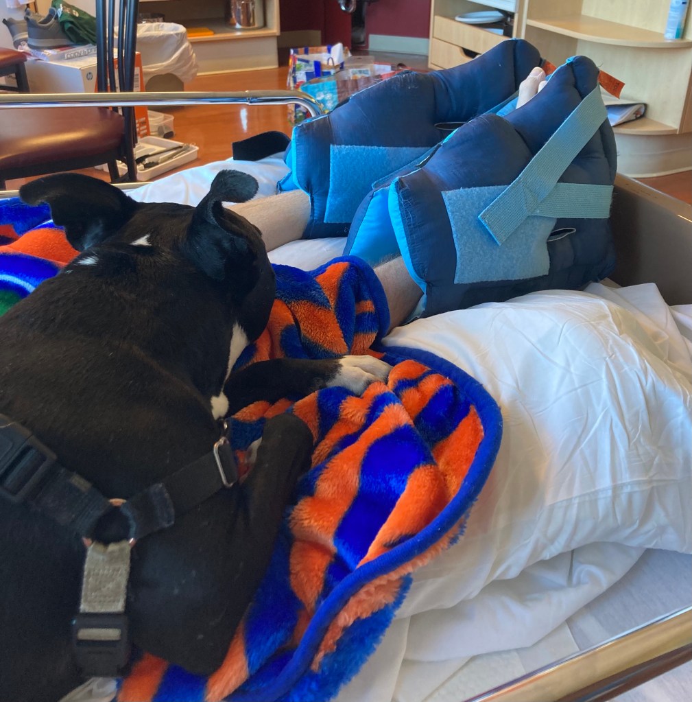 On Saturday, Erickson and I came to help pack and provide a visit from Butter. She curled up on his bed with him and they fell asleep watching the Gator game together.