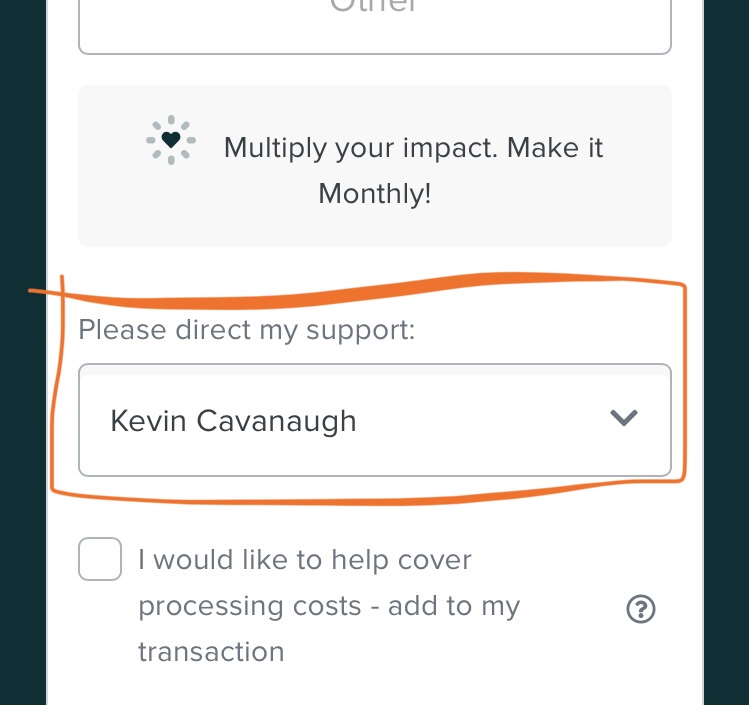 (*Be sure to select his name from the donation drop down menu)